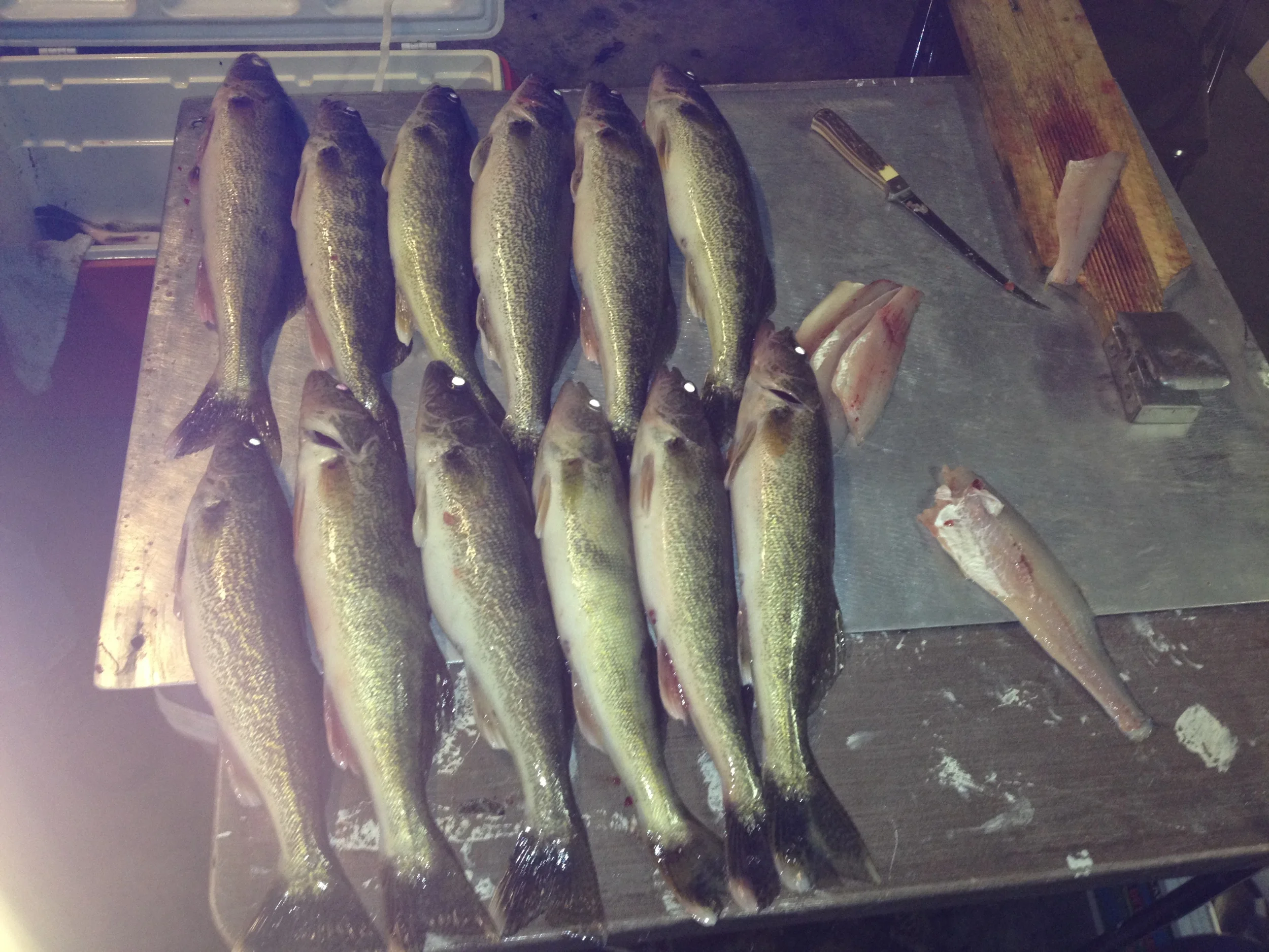 Around mid afternoon the buddy that we had woke up that morning shows up and informs us that he had been at the confluence. And there were more boats than fish. He had only seen but a couple of fish caught all day and asked how we were doing. We held up a few fish that we had caught and told him that fishing hadn't been too bad. (Hehehe) So he jumped in the mix and had the same results. When it was all said and done, our boat had landed over 50 fish! With the biggest (a fat girl) weighing in at 5lbs! Caught and released by Big B!!! All fish kept where approx. 17" - 23" males. WOW what a adventure this turned out to be!!! We all agreed that this had to have been one of the best days (if not the best day) that we have ever had out on the main lake, L.R.!!!!! Well, be safe out there and good luck to all. Let's get out there and land some eyes!!!!