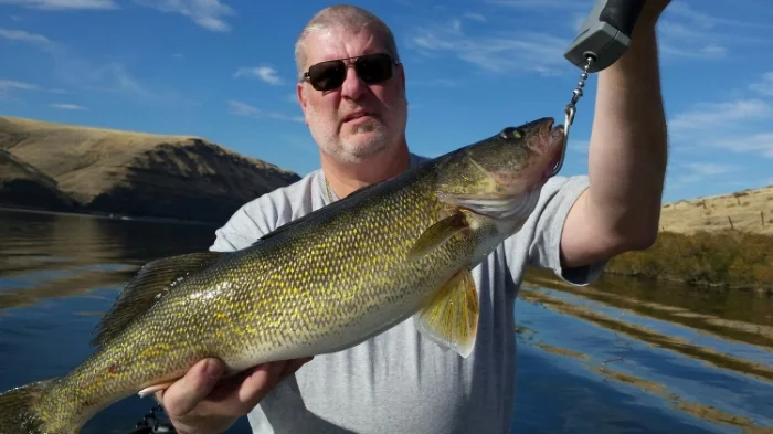 Spokane Walleye Club had 10 rigs at Texas Rapids for the Club Fish Day with the Tri-Cities Club. The Tri-Cities was represented by 3 to 5 boats. The weather on the Snake River was perfect and the fishing was decent. Several large fish were caught. The big fish of the day was 9 pounds caught first thing in the morning by a Tri-Cities angler. Allan landed a 5 pound fish before 10 AM. Doug N also caught a 5 pound fish in the morning. Several club members camped from Thursday through the weekend. Boats caught a mixed bag of walleye (big and small), smallmouth bass, catfish, perch, bluegill, and pike minnow.