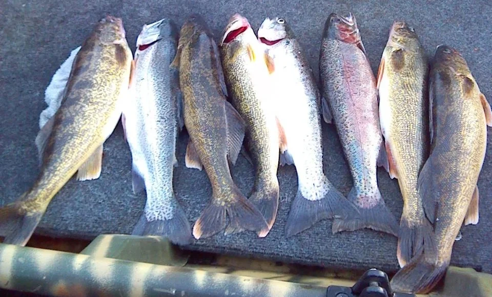 Eli: Rufus Woods - 2/27 I got a text message from Eli following his trip to Rufus Woods on Friday. It looks like he got 5 nice walleye and 3 trout. View fullsize Greg KochFebruary 28, 2015Comment Facebook0 Twitter LinkedIn0 Reddit Tumblr 0 Likes