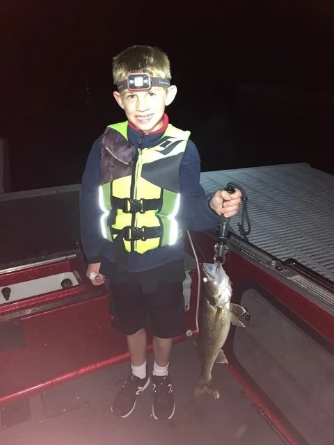 I took my Son Seth out the evening of Friday Sept 13 and early AM of Saturday September 14th to Lake Roosevelt. We fished magic hours of dusk and dawn targeting shallower areas with jerk baits. We had an excellent bite on Friday PM, and a much slower bite on Saturday AM. Friday we boxed 8 walleyes and threw back / lost several more plus several smallmouth. Pic is of a nice 20” keeper held by Seth while he braved the dark once we got back to the dock. It was much slower for us on Saturday AM.