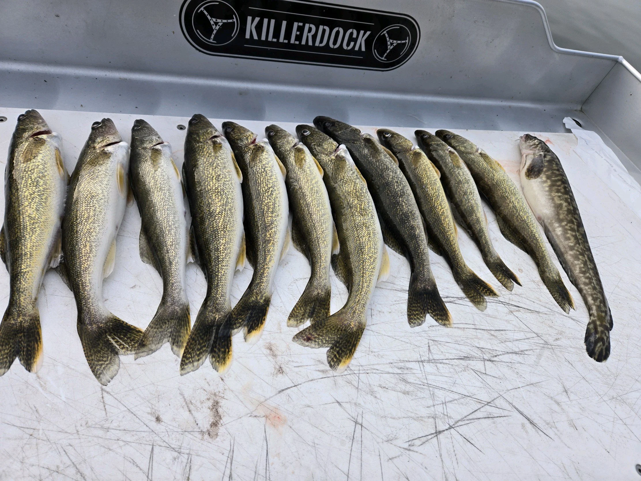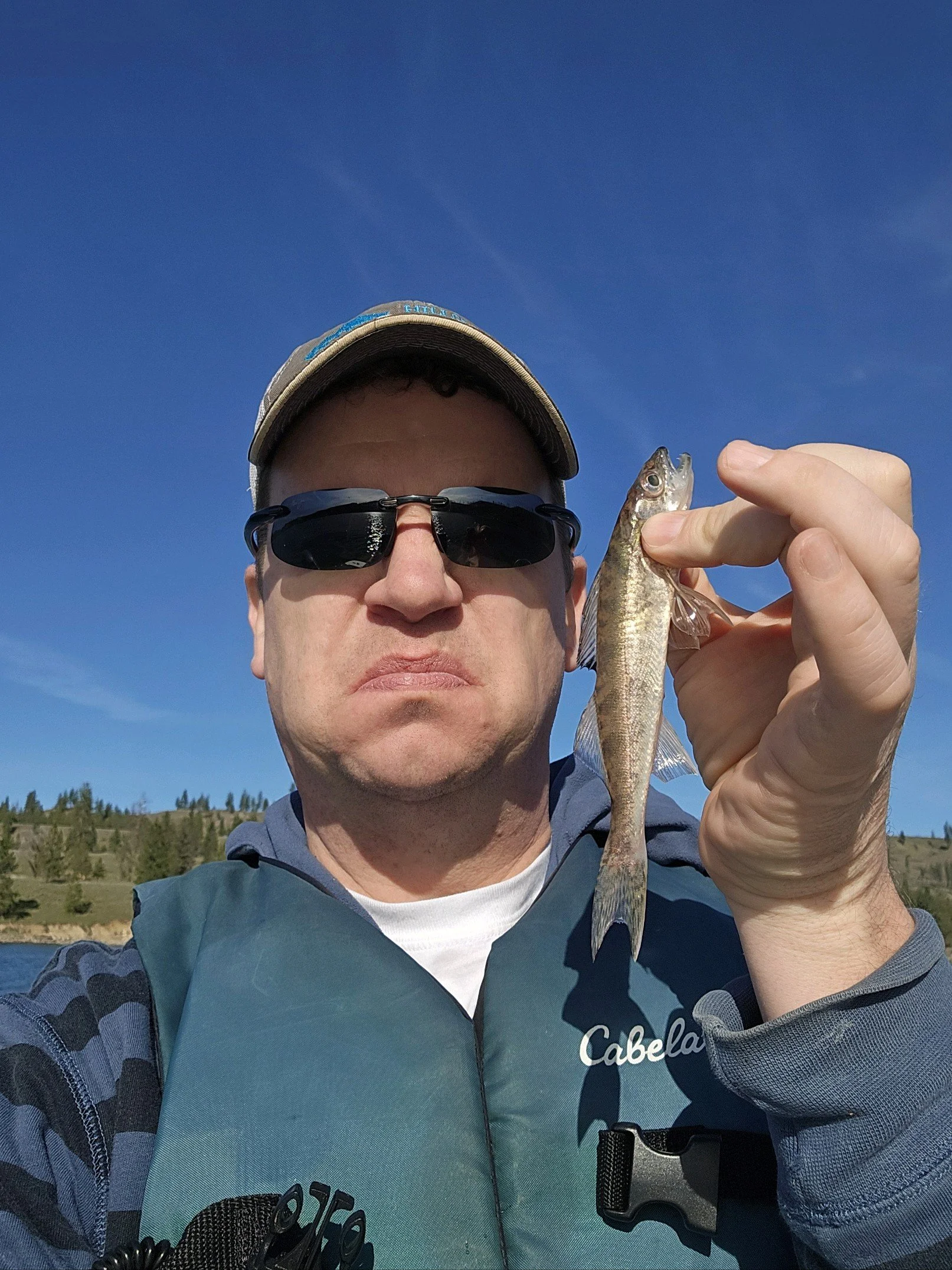 First trip of the season, so my main goal was to make sure the boat and equipment all work. The day started out badly, but a great fellow at Les Schwab in Airway fixed my leaking valve stems on the boat trailer tires. And I was on my way. It took me an hour and a half to mark some walleyes, and I caught 6 keepers and a bonus burbot between 1230 and 130 pm. The bite stopped so I tried several other areas only to catch a baby walleye up the Arm. I returned to my productive spot and got another 5 keepers between 5 and 6 pm then called it a day. Water temp was 44 degrees on the main Columbia and 48 degrees up the Arm. Water clarity was good. There was very little current. Lake elevation was 1283 feet. I have never seen the water so high in April!